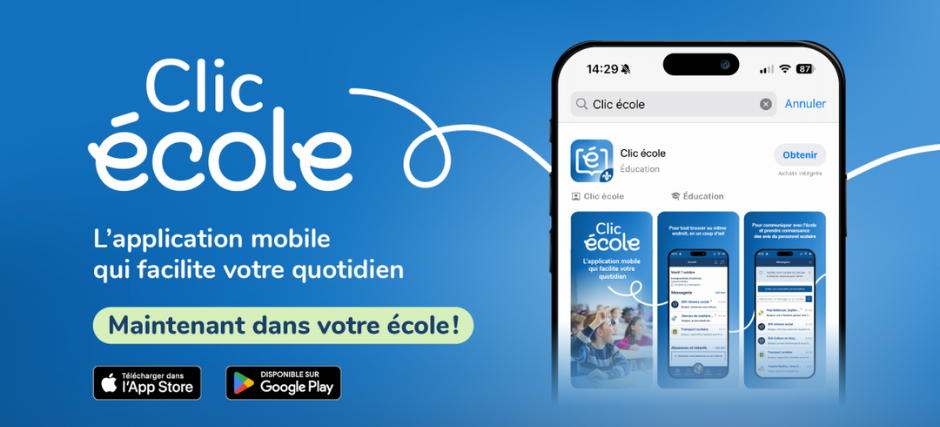Si ce n'est déjà fait, nous vous invitons à télécharger l'application mobile Clic École sur App Store ou Google Play, selon le type de téléphone mobile que vous utilisez.